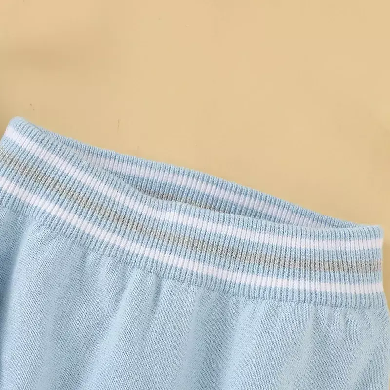 Confeccionado em tricot macio e leve, este conjunto é composto por uma blusa polo com a charmosa estampa Argyle em tons de azul, cinza e branco, e um short liso combinando.